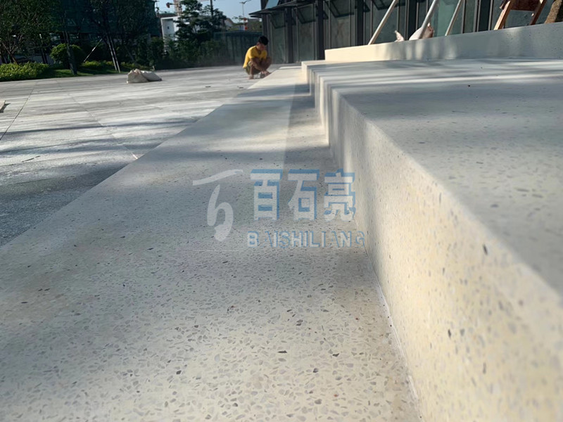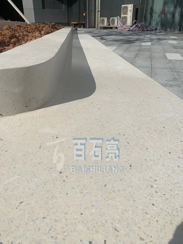 此項(xiàng)目位于重慶市北碚區(qū)蔡家的位于嘉陵江北畔,以坡地退臺(tái)式建筑,打造擁有超19公里一線江景的大平層、平墅、雙拼三大低密度的品質(zhì)住宅產(chǎn)品。水磨石采用白色骨料加白色背景為主打色。 這樣的搭配讓人感覺大方又得體,整個(gè)水磨石坐凳一次成型沒有一絲縫隙。