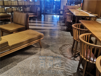 從樣品的選擇到現場分格條的設計到最終成形,都離不開我們每一位同事的辛勤付出。灰水泥和黑色石子的簡單搭配更加襯托出壹丁的設計風格。我們的團隊本著敬業、質量優先的原則,把平平無奇的地面裝扮得格調優雅、亮眼十足,和四周的配色簡單的桌椅搭配十足。
