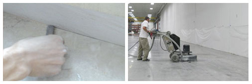 對混凝土地面進行打磨處理,去除浮漿和不結實的混凝土表面,以保證地面經久耐用,同時提高了地面的平整度。