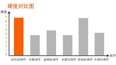 百石亮根據具體施工現場、客戶需求、特定施工工藝確定給客戶混凝土鋼化地坪最有競爭力的服務價格!以下是市場上各類地坪性能對比表: