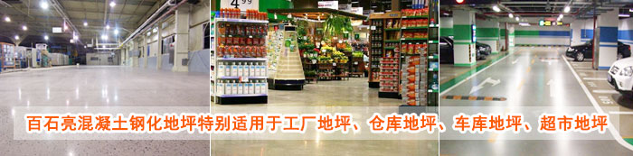 百石亮地坪為工業、倉庫、工廠、車庫、廠房、超市、停車場、實驗室、物流等各種場合提供混凝土鋼化地坪、耐磨鋼化地坪、混凝土耐磨地坪、地坪硬化處理解決方案,讓您的地面永不再起砂、起塵,徹底解決您的起砂、起灰、起塵煩惱!